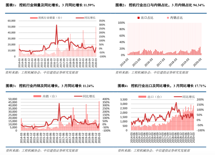 根据中信建投统计,3月挖机行业合计销量49408台,同比增加5130台、同比增长11.59%。1-3月挖机合计销量68630台,虽然较去年同期仍有所下降,但3月的高销量止住了前两月的颓势,也为即将到来的增长态势奠定基调。内需接…......