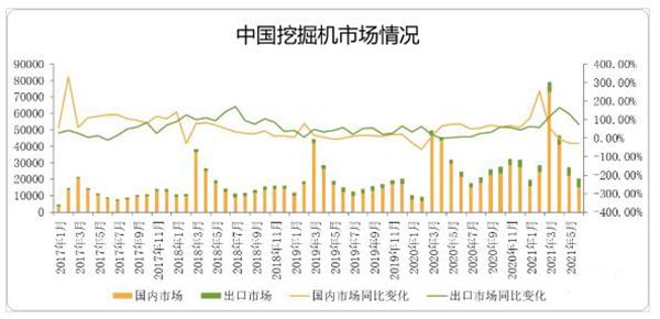 根据中国工程机械工业协会行业统计数据,2021年1—6月纳入统计的26家主机制造企业,共计销售各类挖掘机械产品223,833台,同比涨幅31.3%。其中,国内市场销量193,700台,同比涨幅24.3%;出口销量30,133台,同比涨幅107…......
