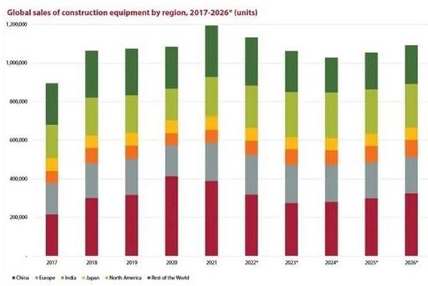 据Off-Highway Research调研数据,2021年全球工程机械设备销量增长10%,达到119.6 万台的新纪录(略高于之前预测的113万台)。预计2022年需求将下降5%。全球设备销售预测(来源:Off-Highway Research)Off-Highway R…......