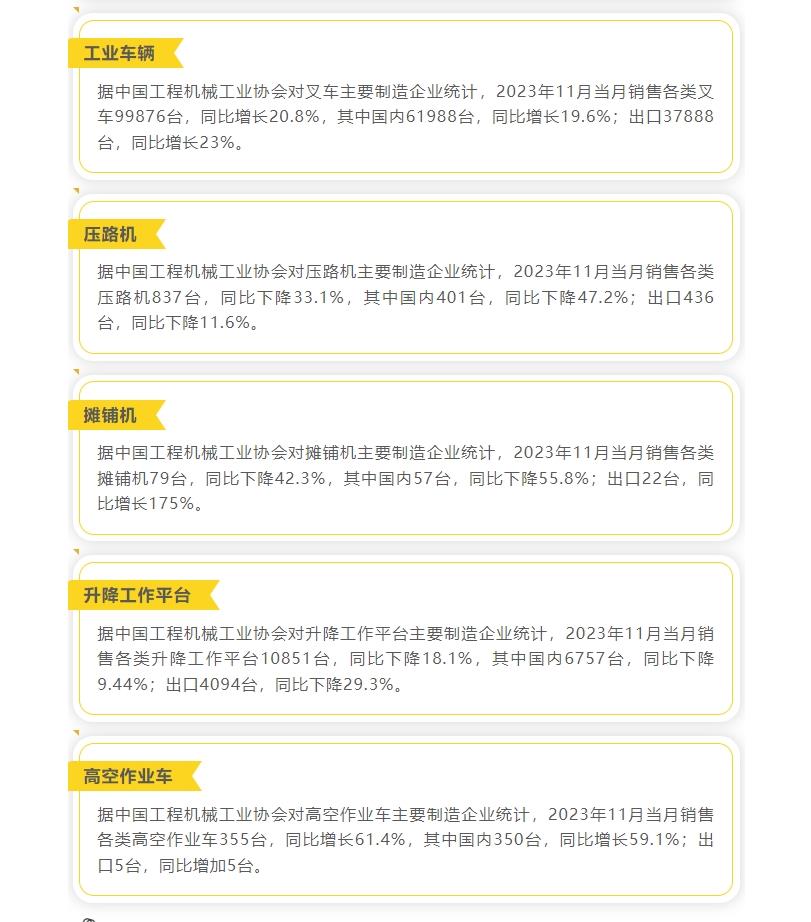 上一篇:2023年11月挖掘机国内市场销量7484台,同比下降48%